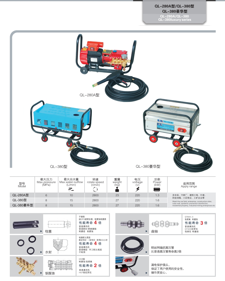 上海神龍集團(tuán)生產(chǎn)的高壓清洗機(jī)QL-380新款清洗機(jī),適用洗車場、汽修廠、建筑工地、外墻、防疫消毒、小區(qū)物業(yè)、工礦企業(yè)等。
