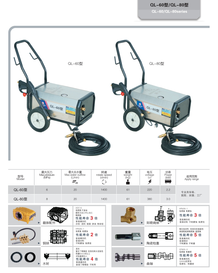 上海神龍集團生產(chǎn)的高壓清洗機QL-60型/QL-80型清洗機,適用洗車場、汽修廠、建筑工地、外墻、防疫消毒、小區(qū)物業(yè)、工礦企業(yè)等。